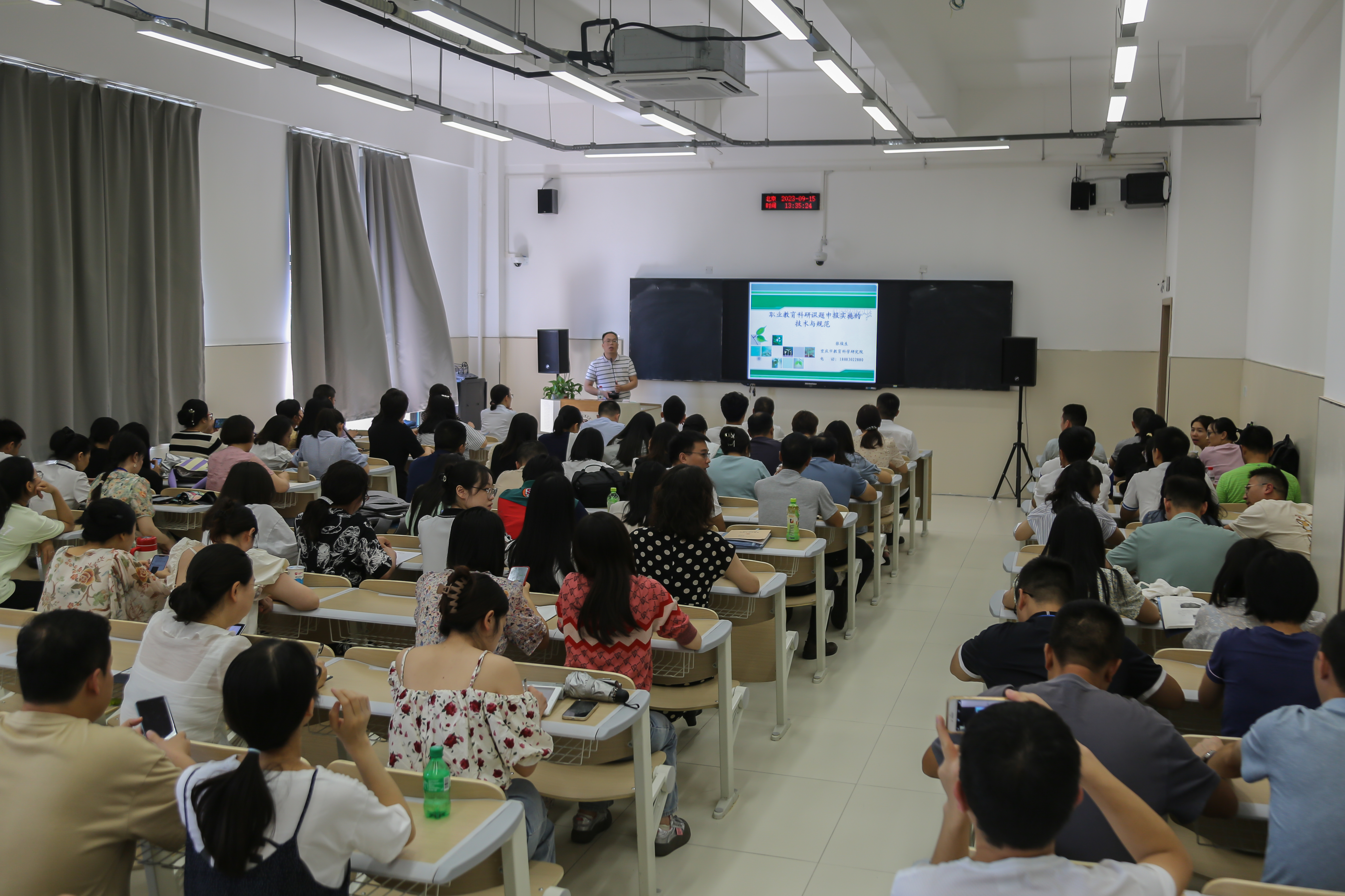 9月15日下午,科研处在广知楼2207室组织了一场题为《职业教育科研课题申报实施技术与规范》的培训讲座,全体教师参加了培训。