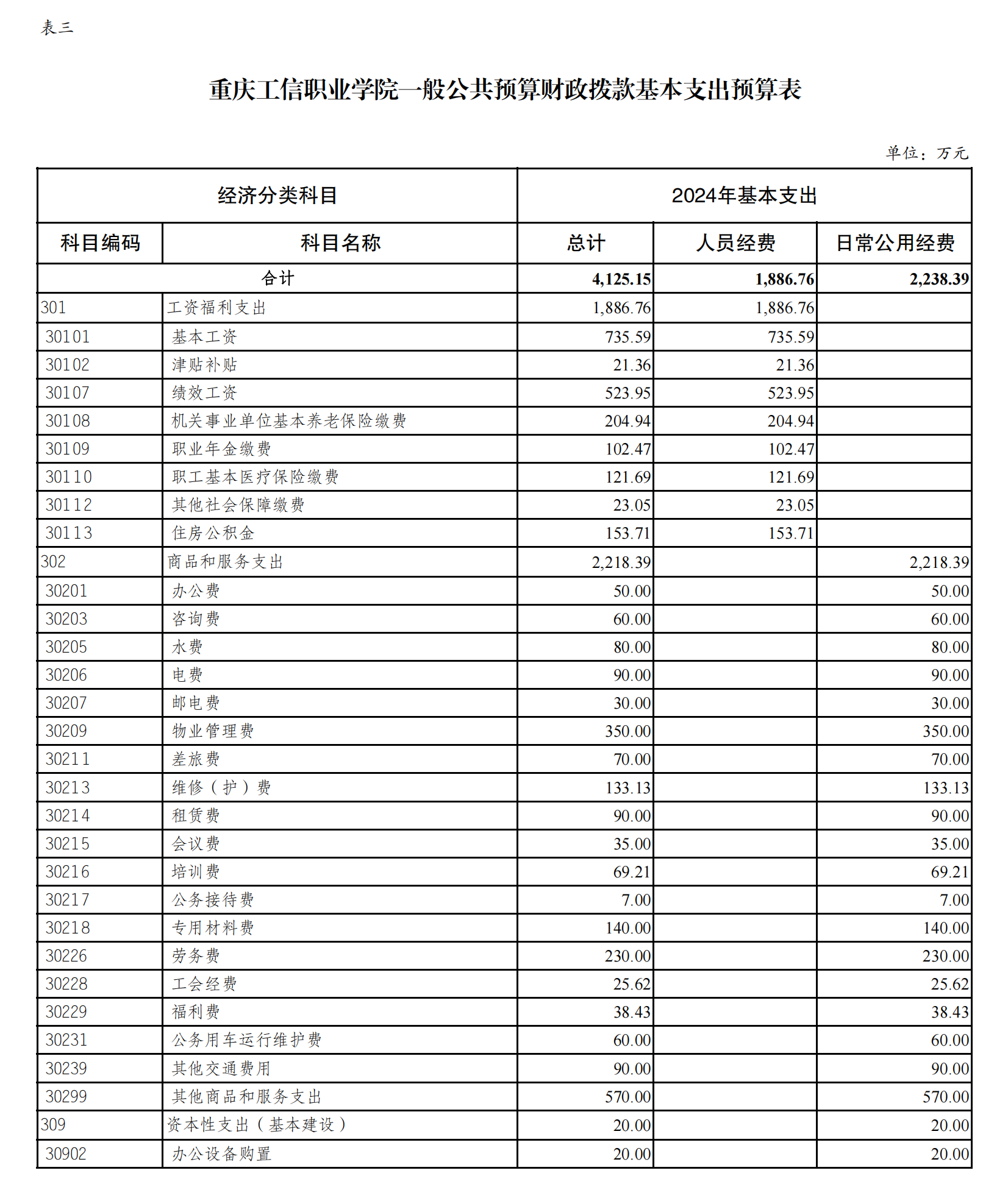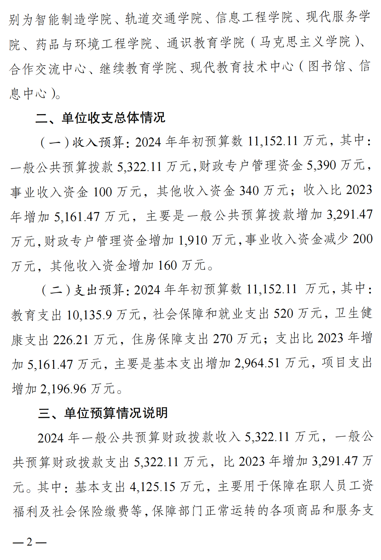 重庆工信职业学院2024年单位预算情况说明