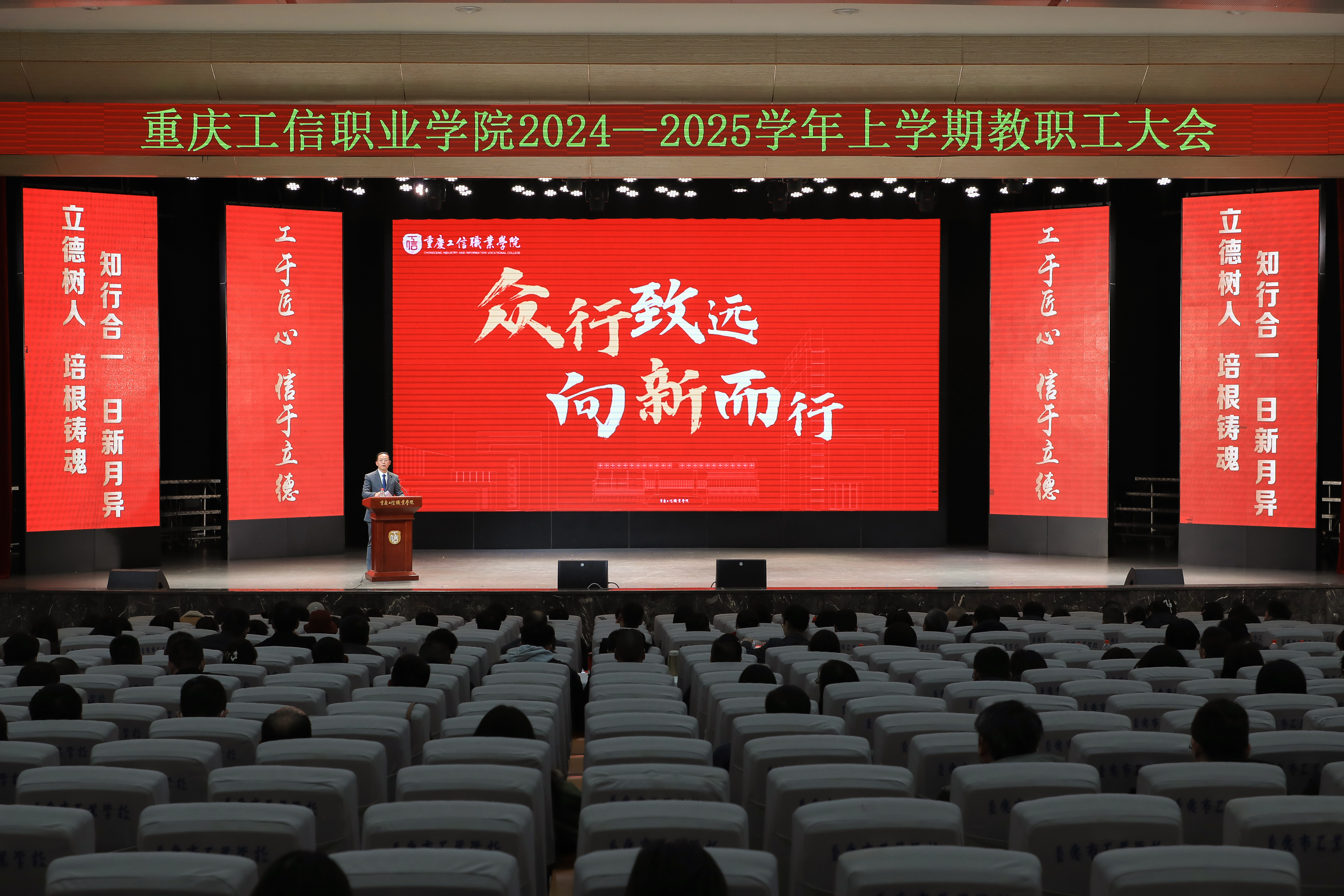 2025年1月16日,重庆工信职业学院隆重举行期末教职工大会。全体教职工齐聚一堂,共同回顾学校发展历程,总结全年工作。会议由党委副书记吴瑶主持,学校领导班子成员出席会议,全体教职工参加。