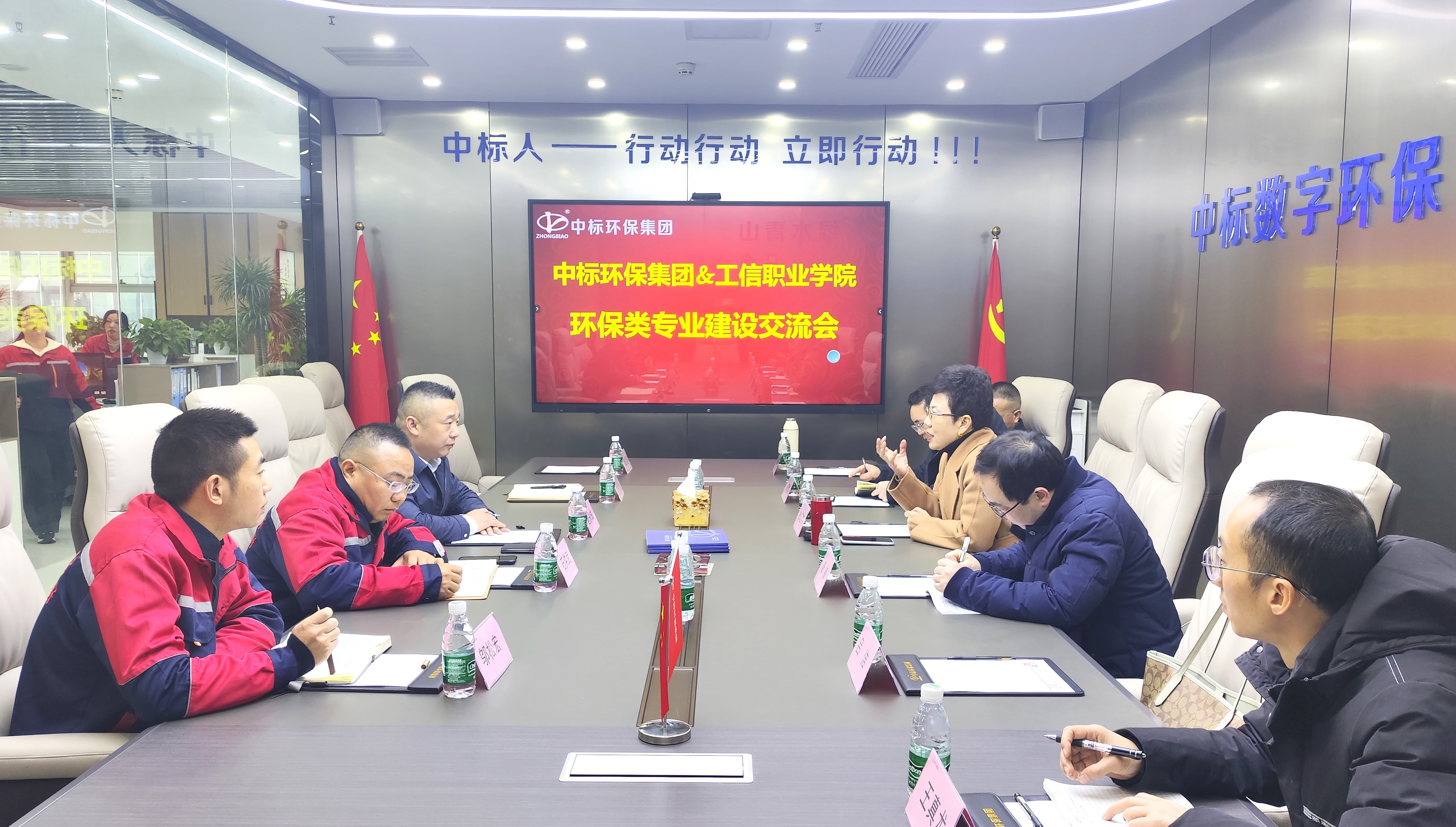 随后,双方举行了环保类专业建设交流会。杜宏伟对企业的热情接待表示衷心感谢,并全面介绍了学校在教育、科研创新和人才培养方面取得的成果。她强调,本次调研旨在通过实地考察与交流,精准对接企业需求,探索校企合作新模式,结合双方优势打造特色学院,强化专业建设,优化师资队伍,并推动科研项目合作。药品与环境工程学院负责人龚锋详细介绍了学院的专业建设情况,并与企业就人才需求、校企共建产业学院、科研合作等议题进行了深入探讨。双方达成共识,将共同建立“工信中标环保产业学院”及数字平台。这种深层次的合作不仅有助于提升学校的教学质量和科研水平,也将为企业输送更多高素质、符合需求的专业人才。