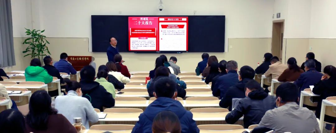 2月8日,重庆市经济和信息化委员会宣讲团成员、二级巡视员陈建军来到重庆工信职业学院,宣讲党的二十大精神,学校党委书记高明主持报告会。