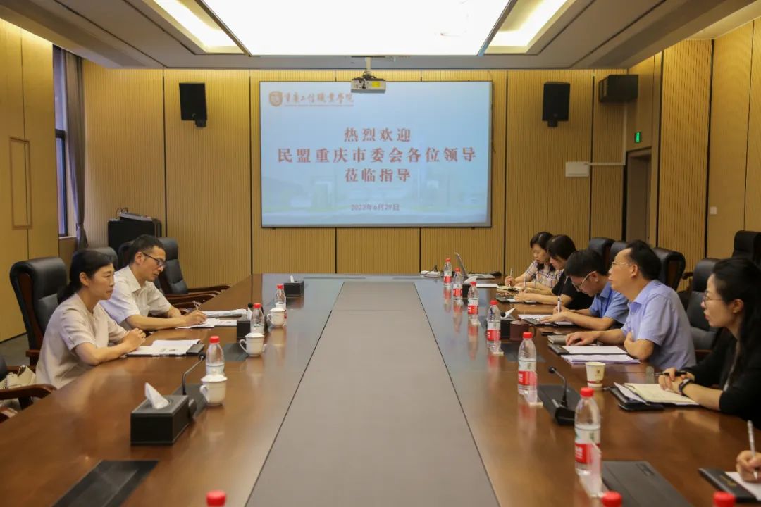6月29日,第十四届全国政协委员、重庆市政协常委、民盟重庆市委会专职副主委蒙格丽,民盟市委会副秘书长兼组织处处长李朝林一行来我校走访调研并看望民盟盟员。学院党委书记高明,专职党委副书记吴瑶,统战部负责人李致葆,民盟重庆市工业学校支部副主委吕洁等参加了座谈。