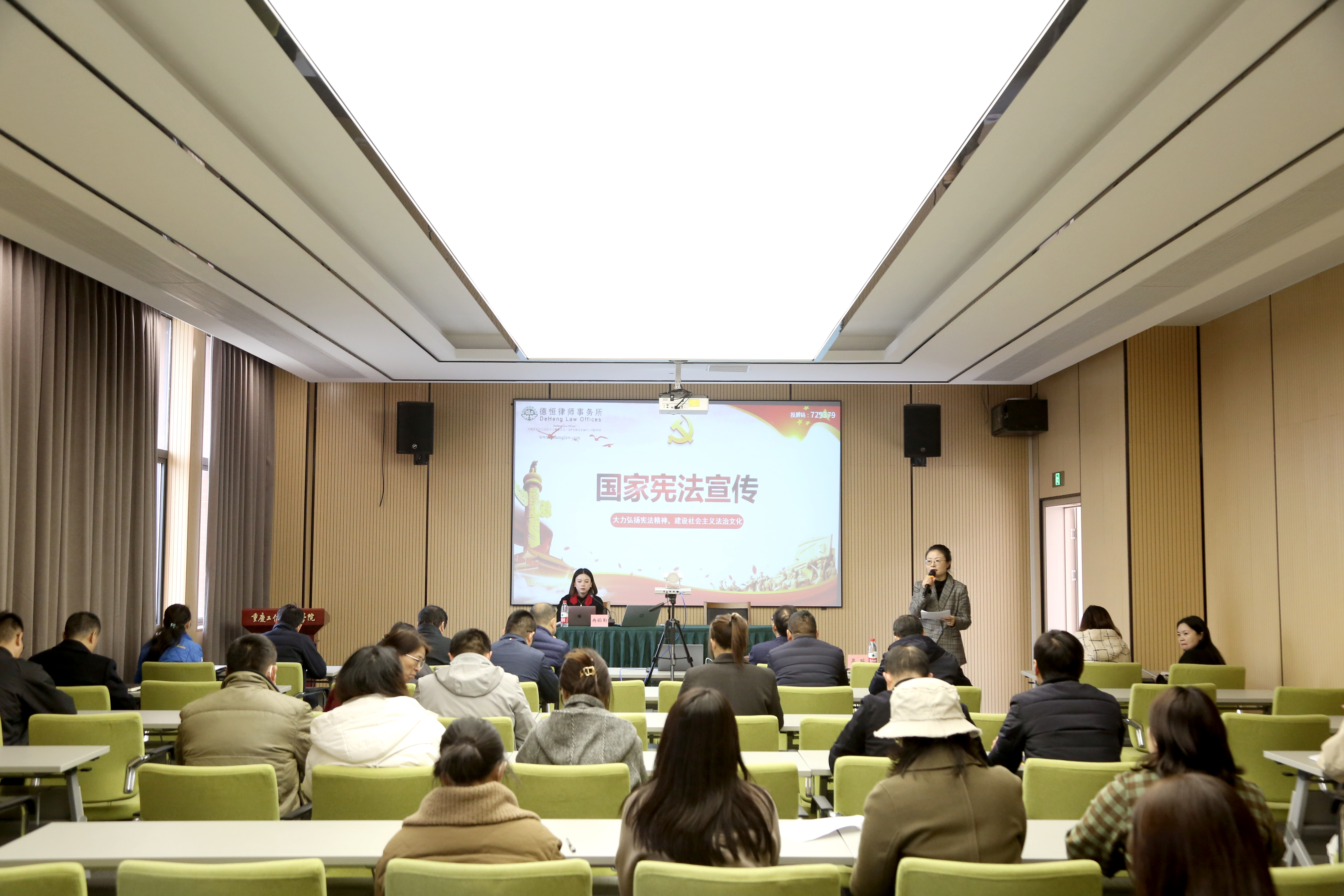12月8日下午,学校邀请北京德恒(重庆)律师事务所冉晅勤律师面向全校教职工进行宣讲。宣讲活动中,冉律师围绕宪法的重要意义、基本内容等六个方面为大家进行了讲解,希望广大教职工牢记宪法赋予我们的权利与义务,自觉尊崇宪法,维护宪法权威。